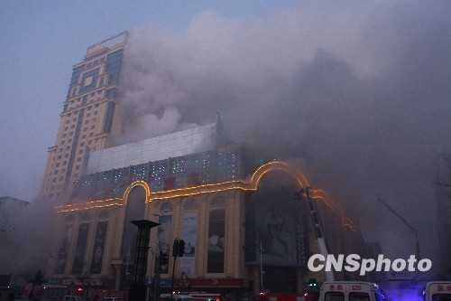图:哈尔滨闹市区一商城发生火灾(2)