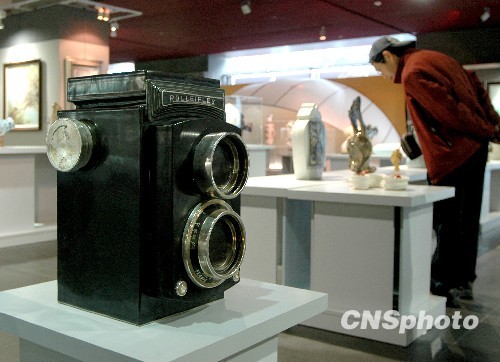 一台瓷制“双镜头照相机”作品。中新社发 李文明 摄