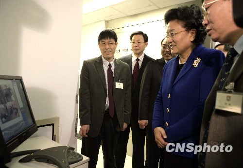 图为刘延东参观新发传染性疾病国家重点实验室,实验室重点研究并监控新发传染性疾病,包括病毒、细菌、真菌及抗药性等。中新社发 洪少葵 摄
