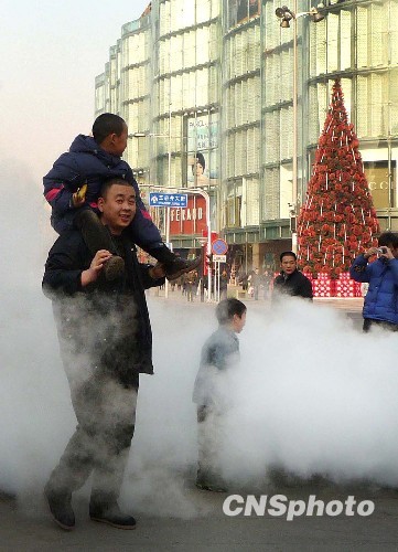 图:王府井地井“撒气” 路人“驾雾”而行(2)