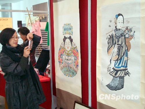 12月6日,参观者欣赏展出的苏州桃花坞木版年画。自12月5日起,为期一周的“走进桃花坞——2009桃花坞新视觉展”在苏州图书馆举行,45幅苏州桃花坞木刻年画精品及富有创意的桃花坞艺术布展给人们带来新的视觉感受。中新社发 王建康 摄