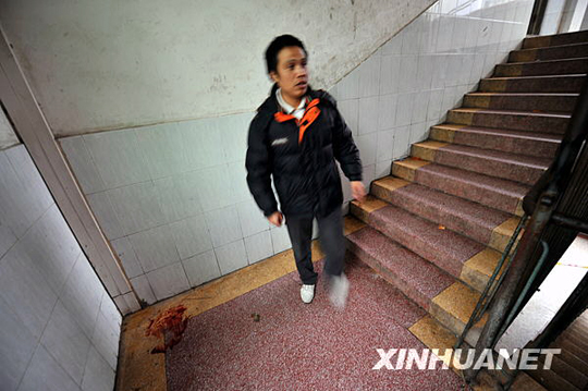 发生事故的楼梯拐角处仍可看到血迹(12月8日摄)。赵众志 摄