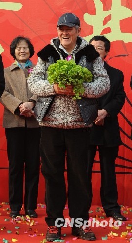 12月8日,大病初愈的赵本山首次亮相天津,为刘老根大舞台天津剧场重装开业助阵,携朱军、白岩松、郎昆等明星大腕出席了开业仪式。此次本山传媒集团投巨资装修的刘老根大舞台天津剧场,也成为继沈阳中街旗舰店、北京前门店之后的第三家有“毛驴拉磨”标志性的高档剧场。剪彩仪式上,彩炮齐鸣,群鸽放飞,除了东北大秧歌的载歌载舞外,还有舞狮队的传统表演。在采访中赵本山透露,如果身体允许,自己就一定要上春晚。图为赵本山一身运动装亮相,心情大好。中新社发 李学仕 摄