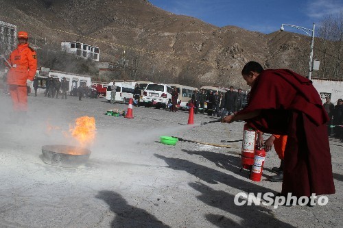 西藏哲蚌寺自去年建立消防队以来,寺庙防火灭火能力大大提升。寺庙建立的喇嘛义务消防队帮助驻寺消防队有效开展了消防灭火和火灾防控工作。