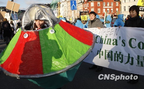 图为在哥本哈根环保大游行中国“环保先锋行活动”引人注目。中新社发 钱兴强 摄
