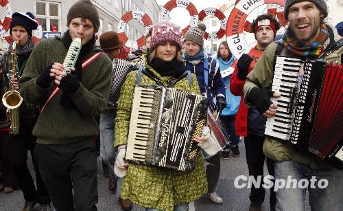 组图:哥本哈根举行大规模环保示威游行(6)