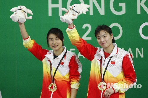 图:郭晶晶、吴敏霞东亚运三米板夺金——中新网