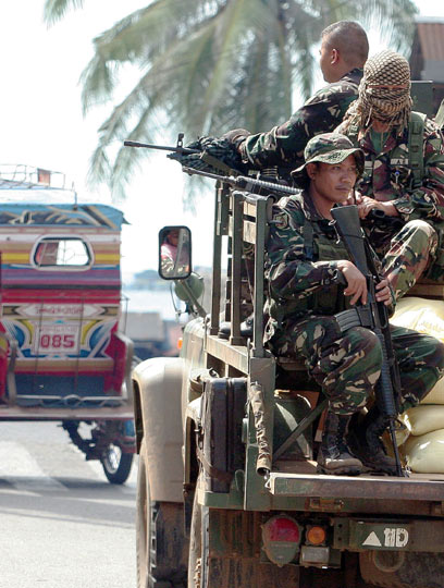 12月13日,菲律宾军方在街头巡逻。