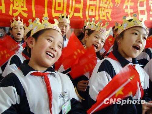 山东东营东赵中心小学举行“我和澳门回归同龄”生日宴会活动。中新社发 刘智峰 摄