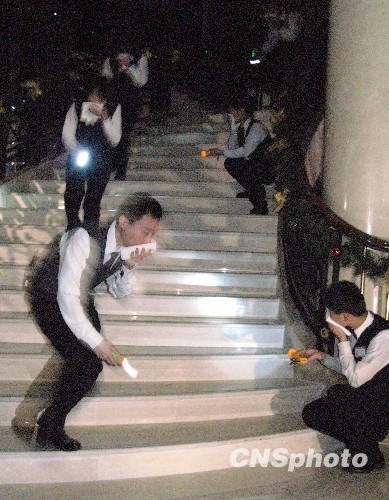 十二月十七日,北京警方在娱乐场所进行圣诞等节日消防演练。