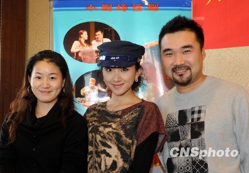 图为该剧男女主角崔鐘、盛贝娜和常小川(从右至左)出席记者会。中新社发 张炜 摄