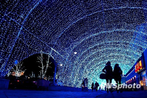 北京“蓝色港湾第二届灯光节”现场灯光璀璨。中新社发 李文明 摄