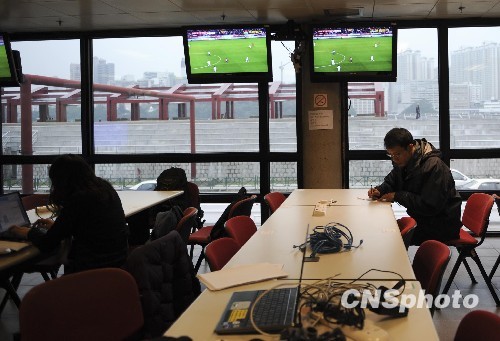 澳门利用体育设施作为回归十周年新闻中心。中新社发 廖攀 摄