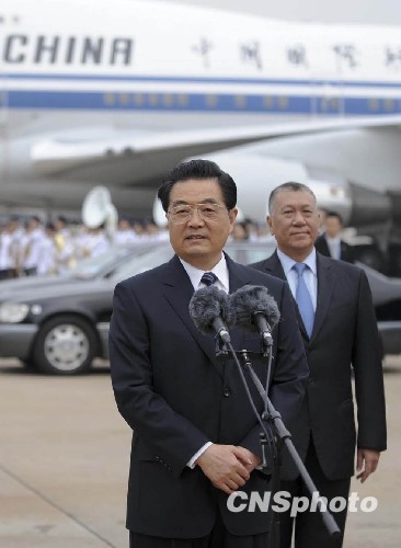 12月19日中午,中共中央总书记、国家主席、中央军委主席胡锦涛乘专机抵达澳门并在机场发表讲话。中新社发 廖攀 摄