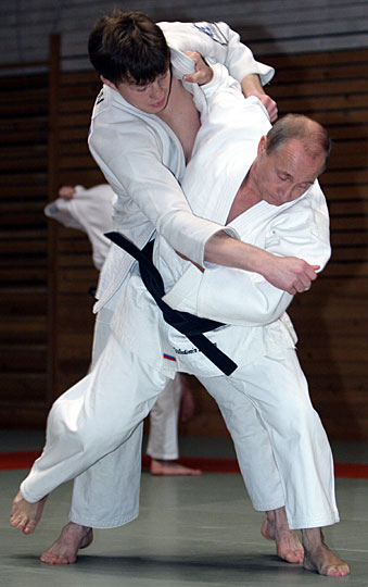 图:俄总理普京柔道场上彰显硬汉本色(3)
