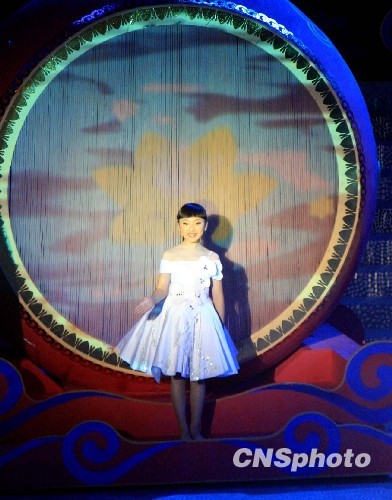 深圳童星豆豆演唱《一个神奇的地方》。中新社发 张勤 摄