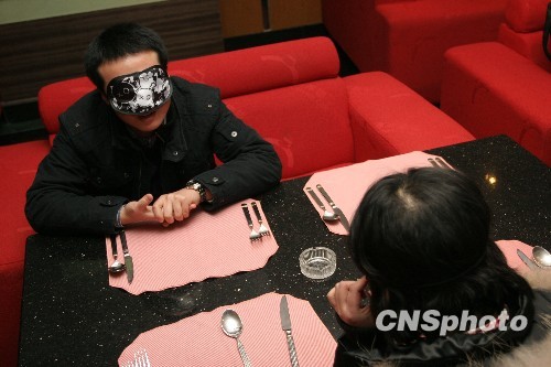 蒙眼派对不见也钟情。中新社发 孙新明 摄