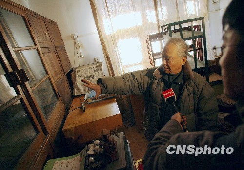 已故国学大师季羡林的儿子季承来到季羡林在北大朗润园的故居,室内物品已被洗劫一空。中新社发 苏丹 摄
