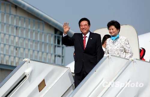 海协会会长陈云林率海协会代表团抵达台中。中新社发 曾嘉 摄