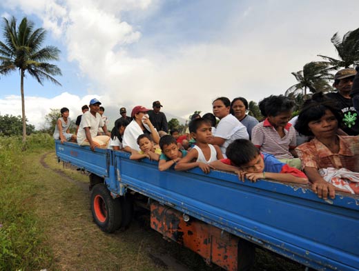 菲律宾当局出动车辆将火山附近村民安全转移至紧急庇护所。