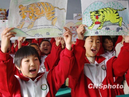 图:山东120名虎娃画虎迎虎年(2)