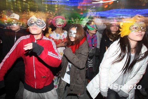 12月24日晚,为迎接圣诞节的来临,在上海举行的各种丰富多彩的“派对”受到了众多沪上时尚青年的青睐。 中新社发 汤彦俊 摄