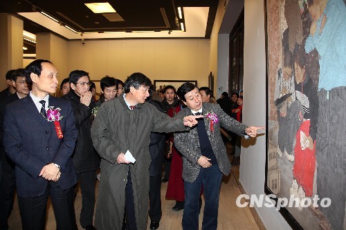 图为中国美协主席刘大为,中国美协分党组书记、副主席吴长江参观画展。中新社发 王保胜 摄