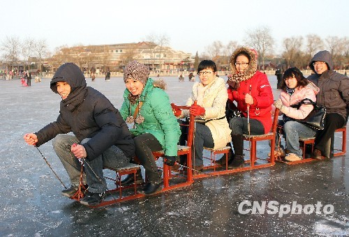 图:北京什刹海冰场迎客 市民感受冬日雪趣(3)