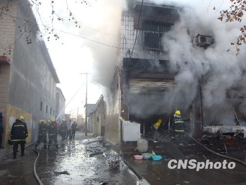 图:山东枣庄一摩托车店突发大火(2)