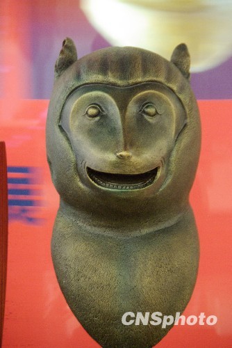 圆明园十二铜兽首(仿品)申猴,现存保利艺术博物馆。中新社发 姚俊 摄