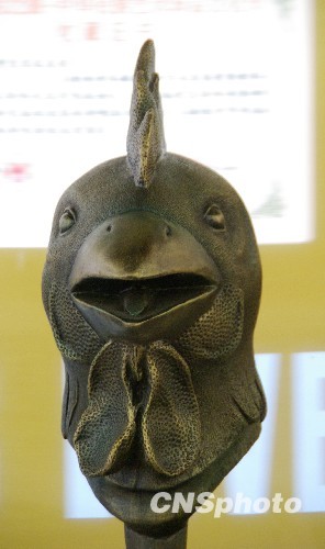 圆明园十二铜兽首(仿品)酉鸡,下落不明。中新社发 姚俊 摄
