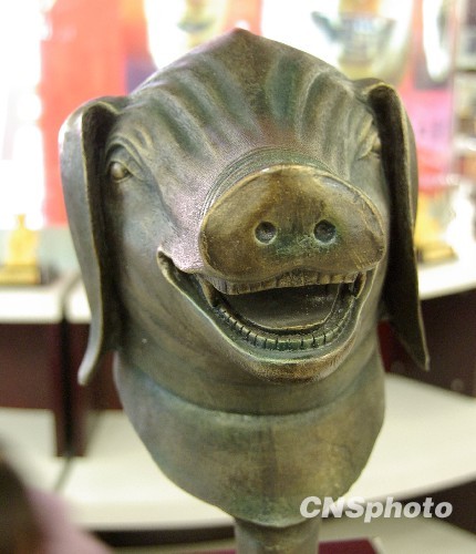 圆明园十二铜兽首(仿品)亥猪。中新社发 姚俊 摄