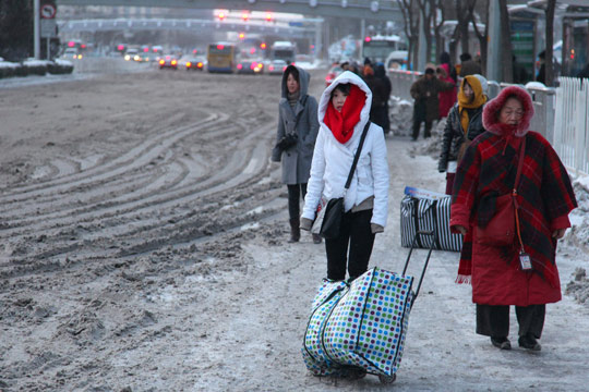1月4日,经过昨天大雪之后,北京终于放晴,随之而来的是大风降温天气。北京白天最高气温降至零下九摄氏度。