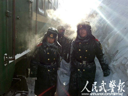 武警官兵连续作战,终于在14时将第三批救援物资运成功送到1500余名被困旅客手中。