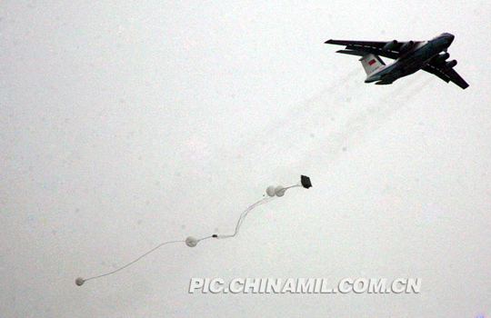 重型装备从天而降。李爱明 摄