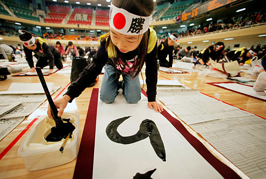 1月5日,日本东京举行了一年一度的新年书法大赛。来自日本各地约3500人在东京武道馆内写下了对虎年的期望与祝福。