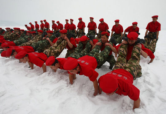 组图:长春消防官兵雪中赤膊苦练 (2)