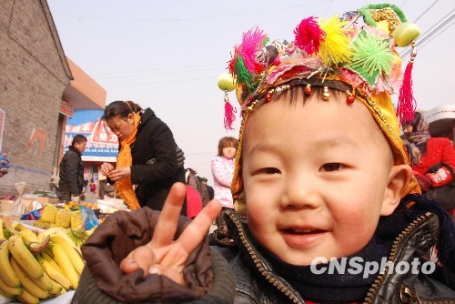 随着农历虎年临近,在山西运城新绛县城乡集贸市场上,传统手工缝制,地方民俗韵味浓厚的儿童虎鞋、虎帽、虎枕、虎袖等手工艺品成为儿童喜迎虎年的抢手礼物。中新社发 高新生 摄