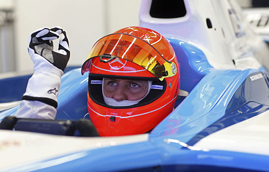 1月12日,德国车王舒马赫在西班牙南部赫雷斯进行试车,准备迎接2010年F1赛季的到来。