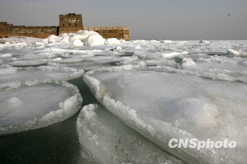 图为秦皇岛市山海关沿海一线的冰海景色。中新社发 富田 摄