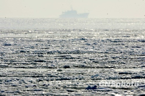 图为秦皇岛市山海关沿海一线的冰海景色。中新社发 富田 摄