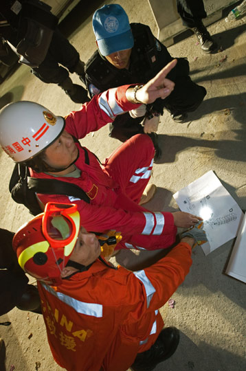 当地时间1月14日,中国国际救援队在海地首都太子港展开救援。