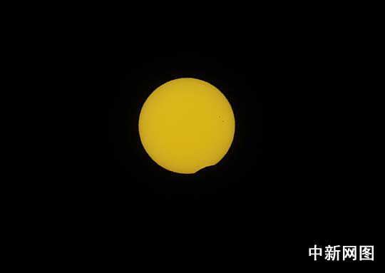 图为15:34分,北京拍摄到的日食初亏。中新网记者 金硕 摄