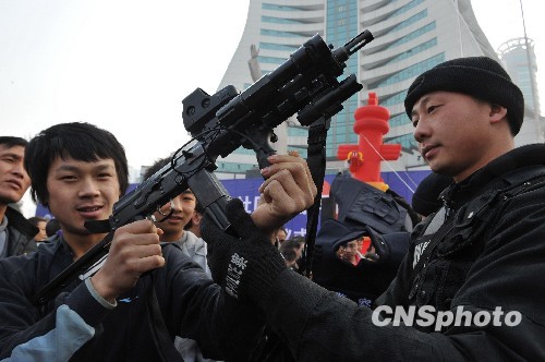 贵阳市民与警察新装备零距离接触。中新社发 吴东俊 摄