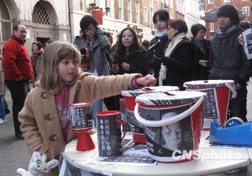 英国华人响应“英国紧急灾难委员会”呼吁,当地时间1月17日在伦敦华埠举行“海地救援行动”,为灾区民众募捐筹款,短短两个小时已筹得1708英镑善款。图为一儿童向募捐箱内投入钱款,表达爱心。中新社发 魏群 摄