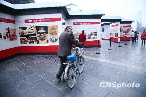 图为市民正从展出的圆明园老照片前经过。中新社发 张浪 摄