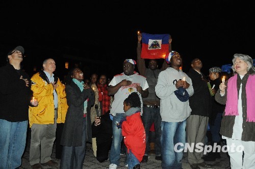 图为烛光守夜活动上,旅美海地人高唱圣歌为遇难同胞祈祷。中新社发 吴庆才 摄