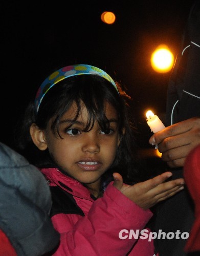 图为一名海地女孩出席烛光守夜活动。中新社发 吴庆才 摄