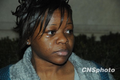 图为烛光守夜活动上,一名地震中失去多位亲人的海地女孩泪流满面。中新社发 吴庆才 摄