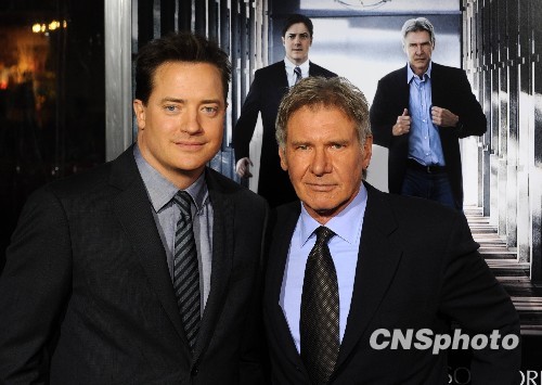 当地时间一月十九日晚,美国电影《良医妙药》(Extraordinary Measures)在好莱坞举行全球首映式。片中主角、好莱坞著名影星布兰登·费舍(左)和哈里森·福特共同出席首映式。《良医妙药》根据美国真人真事改编,为了救治身患庞倍氏症的儿女,主人公约翰·克罗利倾其所有创建生物制药公司并研发医治庞倍氏症的药物、最终取得成功的感人故事。克罗利的事迹因此成为哈佛商学院MBA教学的经典案例。中新社发 张炜 摄